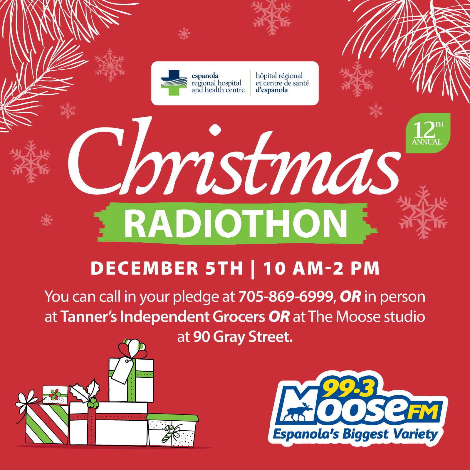 By Rosalind Russell – The 12th Annual Christmas Radiothon in support of the Espanola Regional Hospital & Health Centre Foundation is today, so you can drop by the Moose 99.3 FM CJJM – Espanola studio at 90 Gray Street for … Continue reading