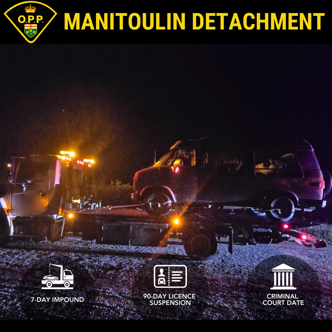 (ESPANOLA, ON) – One person has been charged with refusal after police received a traffic complaint. On Wednesday, September 3, 2025, at approximately 11:00 p.m., the Manitoulin Detachment of the Ontario Provincial Police (OPP) received a traffic complaint reporting a possible … Continue reading