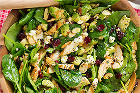 Cranberry Avocado Spinach Salad with Chicken and Orange Poppy Seed Dressing
