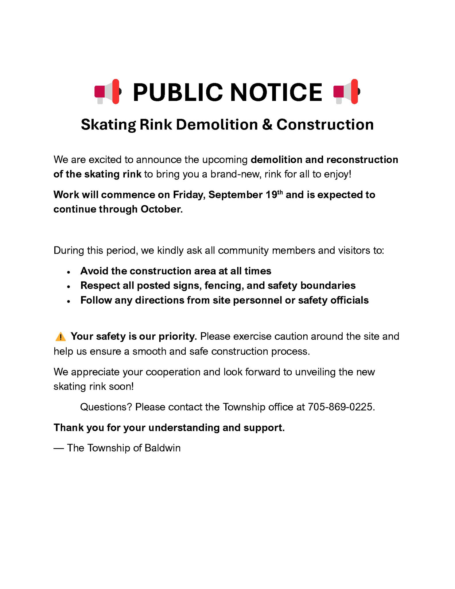 By Rosalind Russell – The Township of Baldwin is undertaking a project to update their rink, which will be able to be used year-round. According to the release, the rink now in place will be demolished and a new one … Continue reading