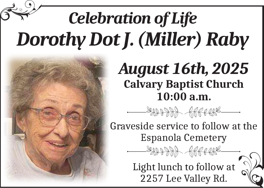 Celebration of Life Dorothy Dot J. (Miller) Raby