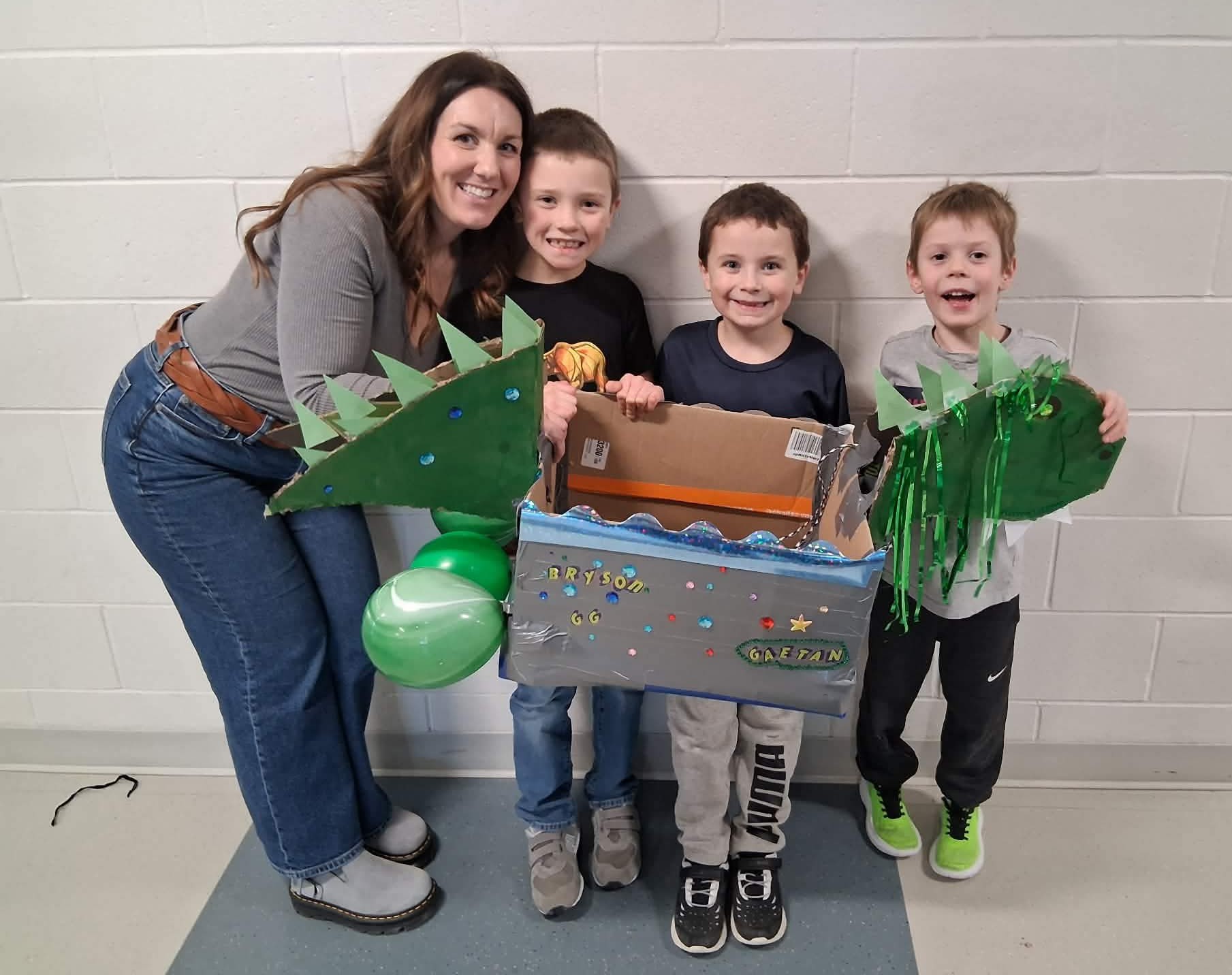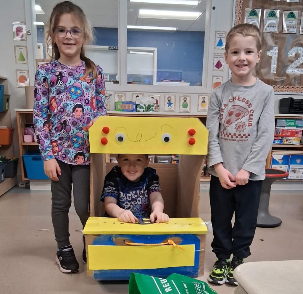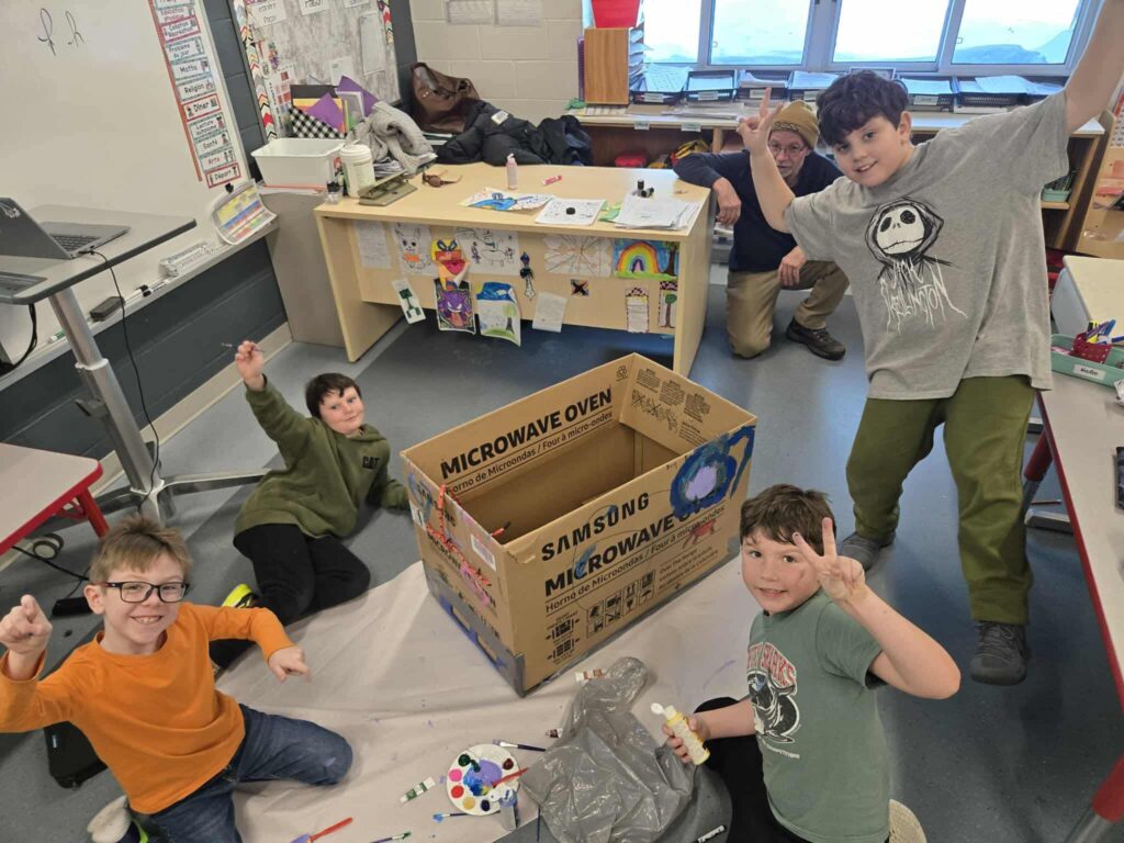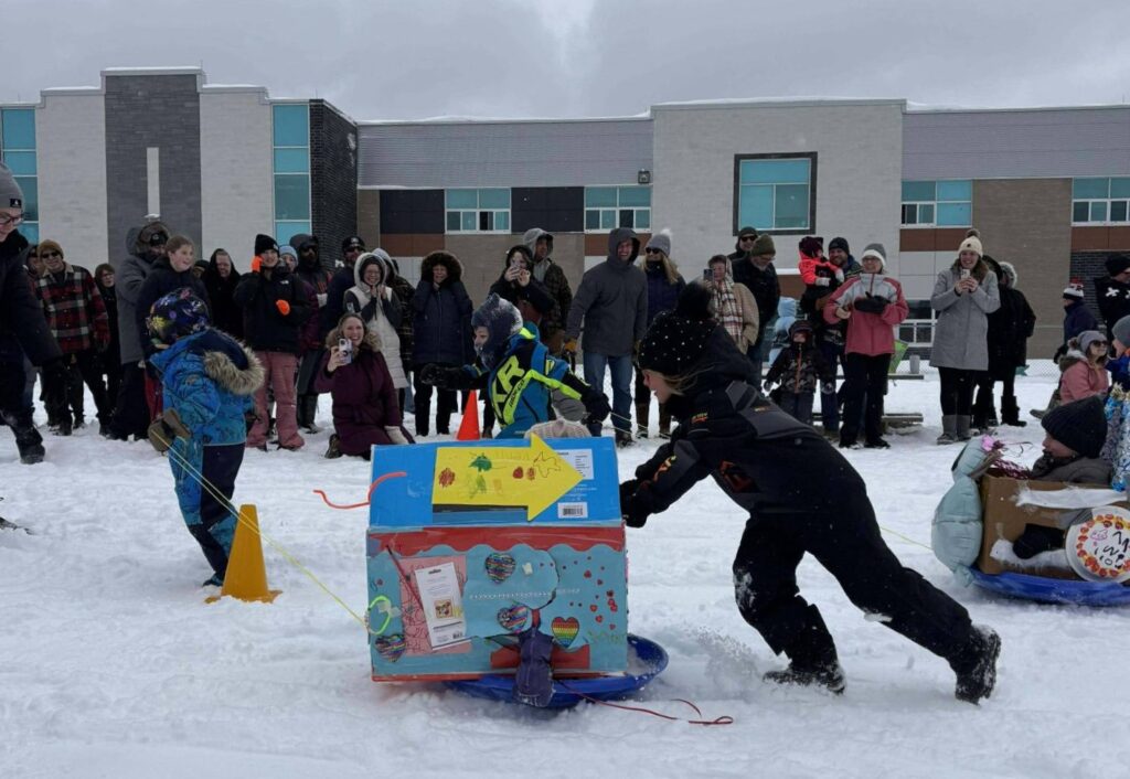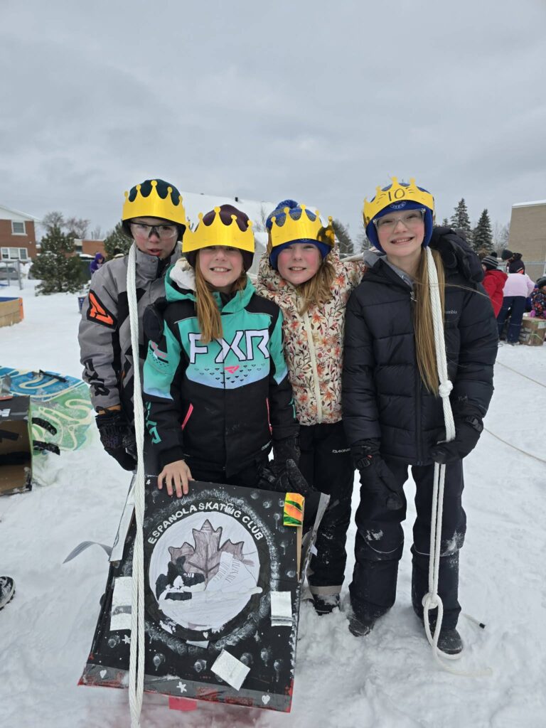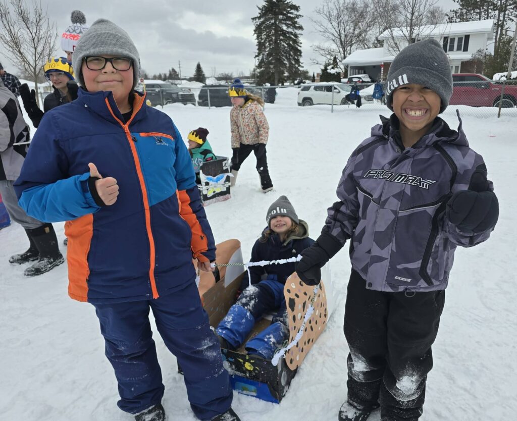 École élémentaire catholique La Renaissance (Espanola) recently hosted a highly engaging event that highlighted the creativity, dedication, and collaborative spirit of its students from Kindergarten to grade 8. Over the course of several days, students worked diligently to design and construct cardboard sleds that were both functional and visually striking. On the day of the event, participants gathered in the schoolyard to put their creations to the test in a friendly race. During the race, one student sat inside the box while the other two took on the challenge of pushing the sled over a snow-covered surface. The teams demonstrated remarkable teamwork, perseverance, and pride in their collective accomplishments.