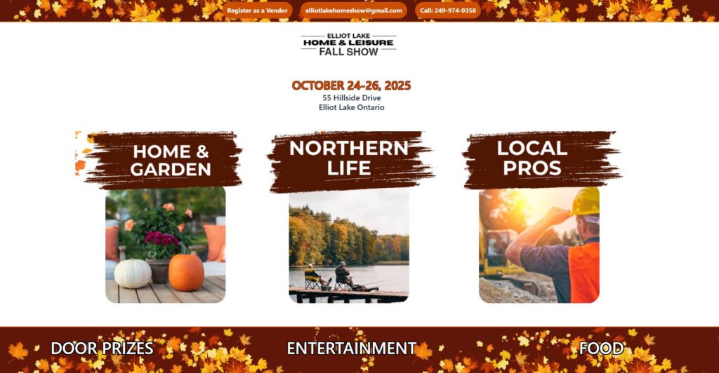 Vendors, spaces are limited and filling fast. For more information or to register as a vendor, visit Elliot lake home show dot com