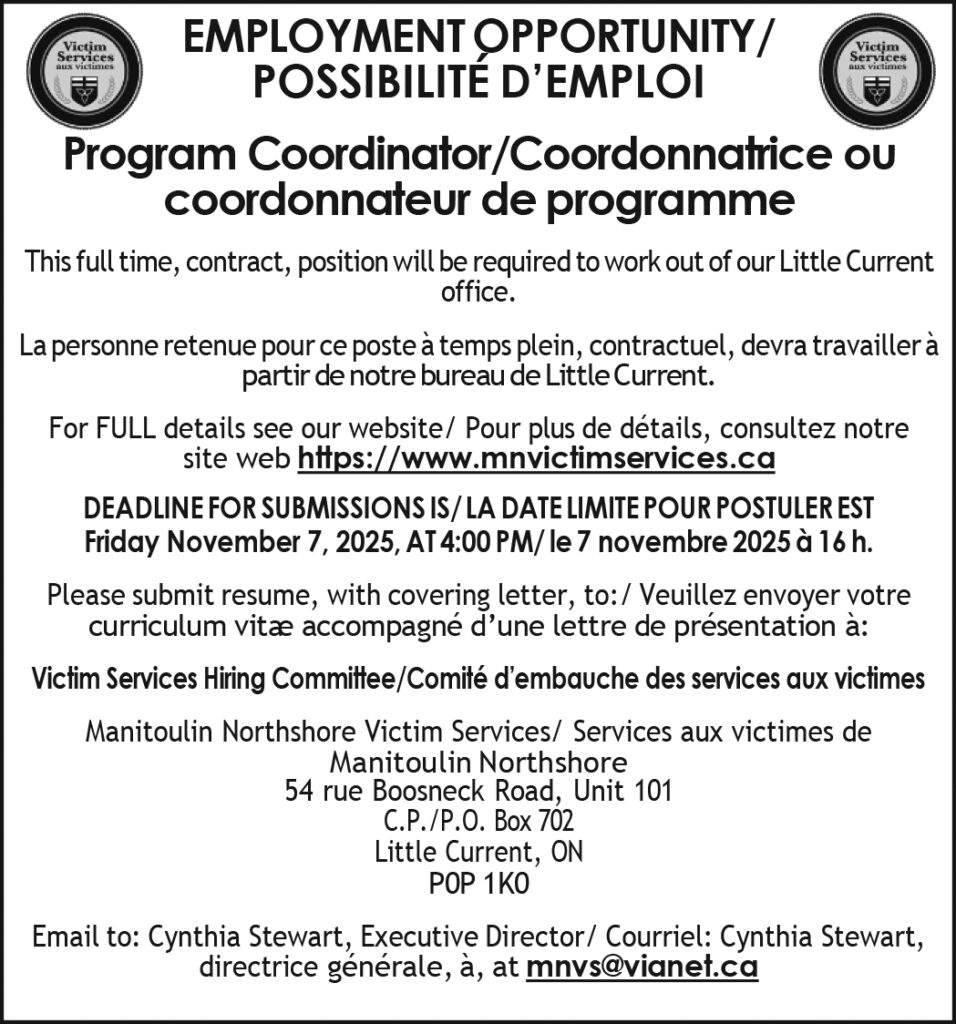 Employment Opportunity – Manitoulin Northshore Victim Services
