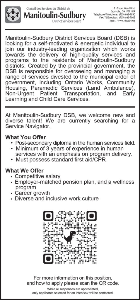 Employment Opportunity – Manitoulin-Sudbury District Services Board