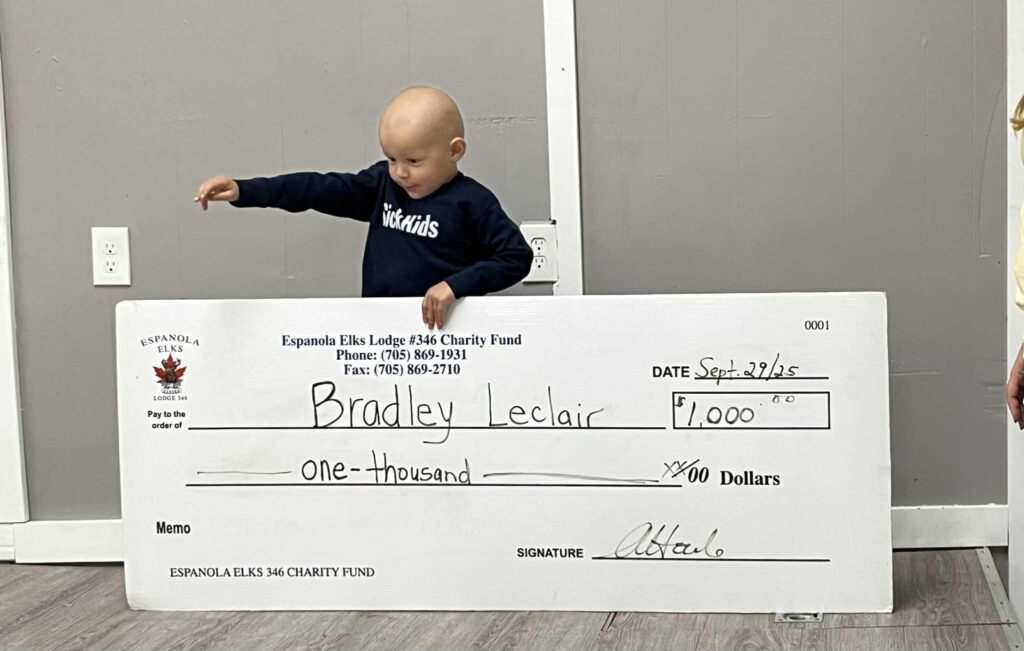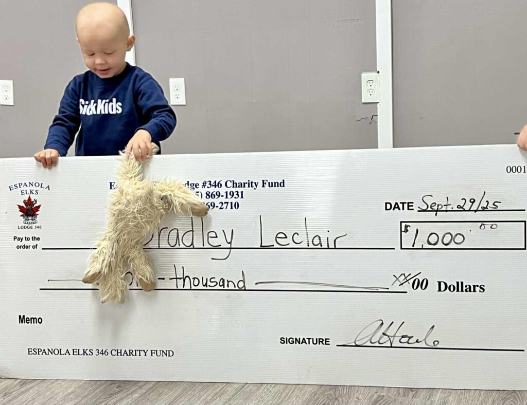 By Beth McVey – Espanola Elks giving back to community by help little Gino in his battle with cancer. The Elks are proud to be able to support need in the community.