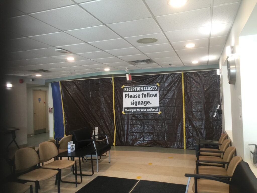 Photo: Renovations are underway at the family health team reception space. Photo by Rosalind Russell