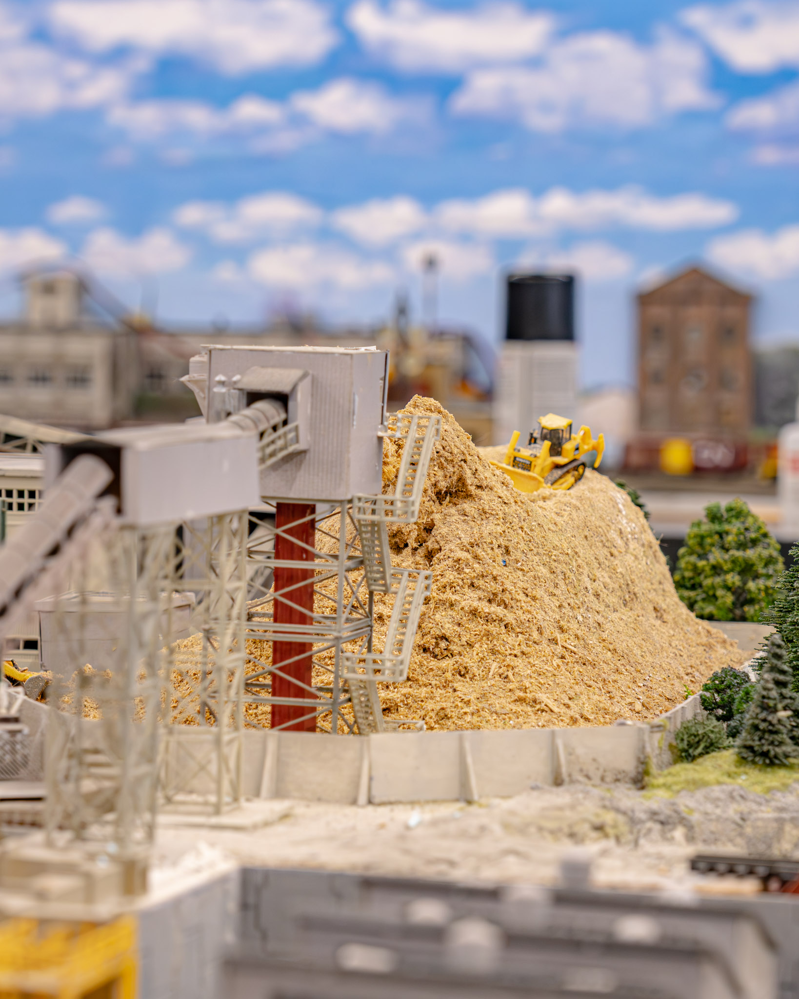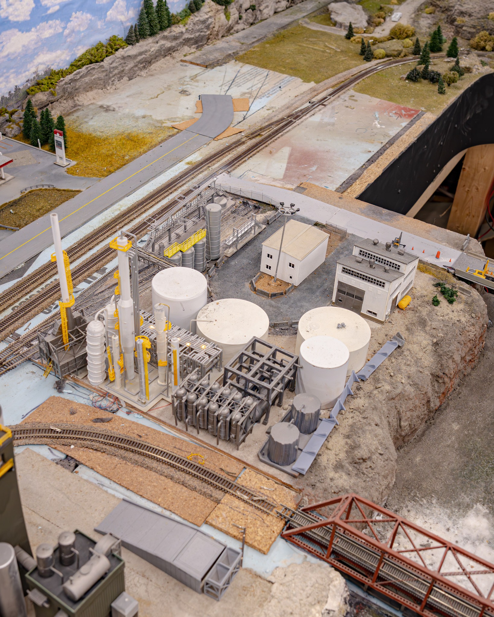 Every piece is built entirely from scratch, cut, designed, painted and placed on a large table and is correct in the N Scale, a popular model railway scale where models are built at a ratio of 1:160 using 9 mm track gauge.