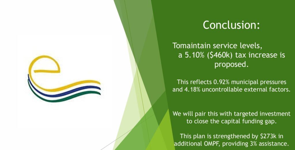 The draft operating budget proposes an overall total of $19.8 million dollars with a 5.10% increase in taxation revenues amounting to $460,000 over the 2025 budget.