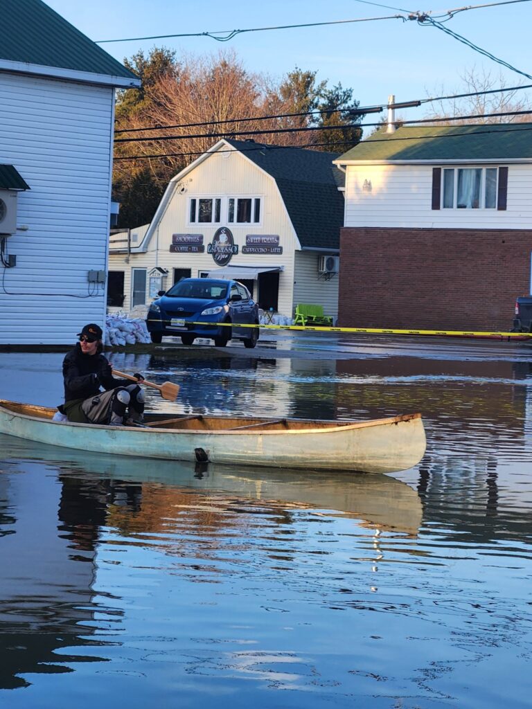 Photo: Mindemoya’s Four Corners is flooded out, canoe anyone? Photo provided by Brandy Smith and used with permissions.