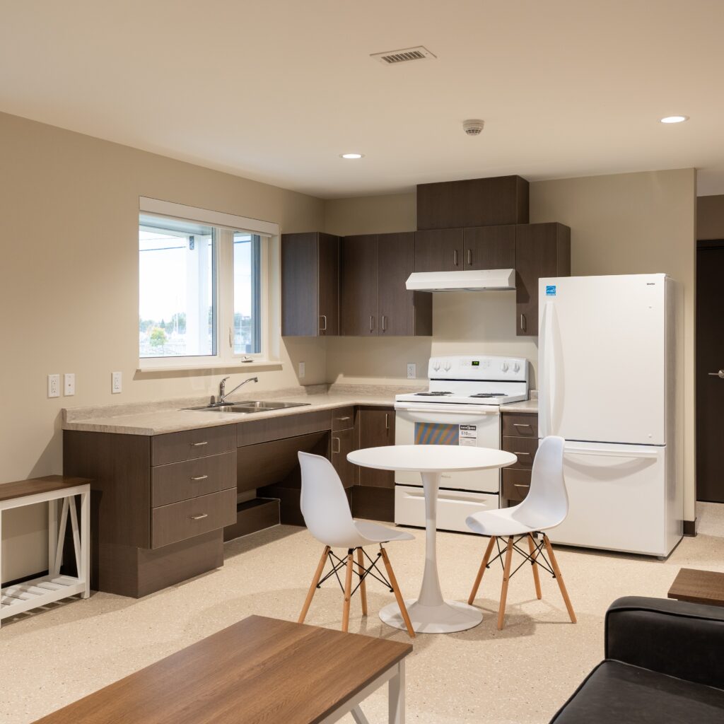 Located at 661 Queensway Avenue, the complex includes a mix of one-bedroom units, all fully furnished with several designed to be fully accessible.