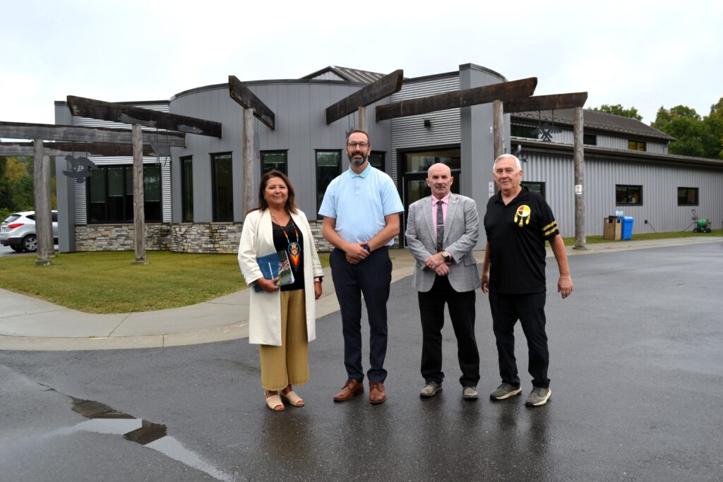 Photo provided: Kenjgewin Teg President Beverley Roy, Nolan Quinn, Minister of Colleges, Universities, Research Excellence and Security, Algoma-Manitoulin MPP Bill Rosenberg, and Kenjgewin Teg Board Chair Robert Beaudin pose in front of the Kenjgewin Teg Anishinabek Skills, Innovation and Research Centre (ASIRC) during a visit to the campus in the fall of 2025.