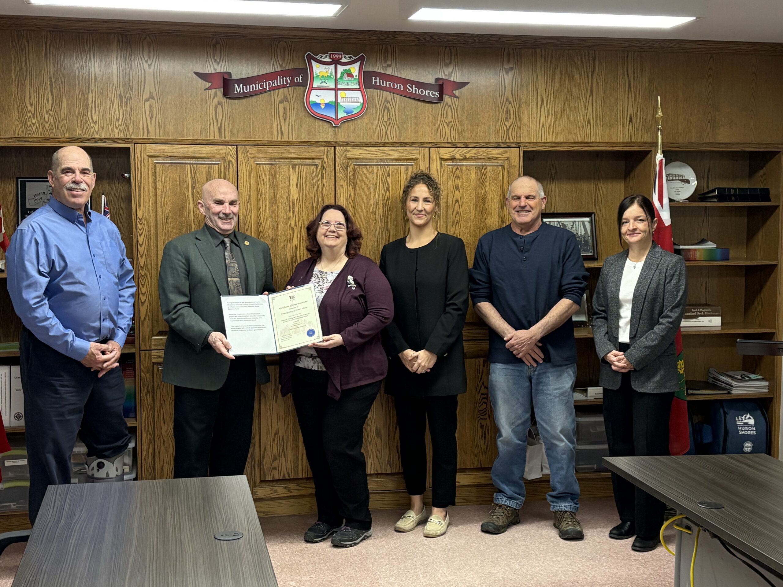 Huron Shores: Deputy Mayor Peter Falk, MPP Bill Rosenberg, Mayor Jane Armstrong, CAO/Clerk Natashia Roberts, Councillor Tim Currie, Deputy Clerk Amber Shannon.