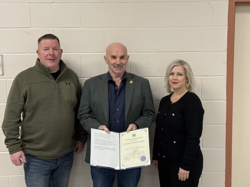 Nairn & Hyman Township: Deputy Mayor Trevor McVey, MPP Bill Rosenberg and CAO/Clerk/Treasurer Belinda Ketchabaw