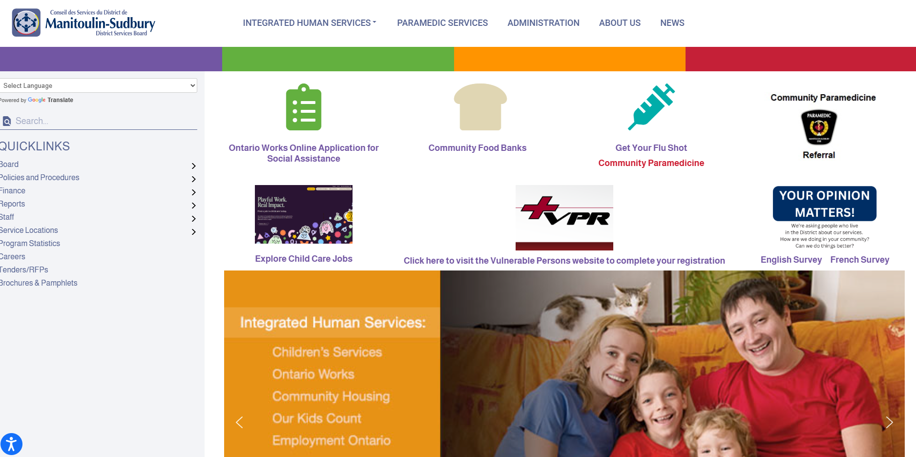 The survey is offered in both English and French, and can be accessed on the www.msdsb.net website, by clicking the provided links, English: Manitoulin Sudbury DSB Community Survey French: Manitoulin Sudbury DSB Community Survey