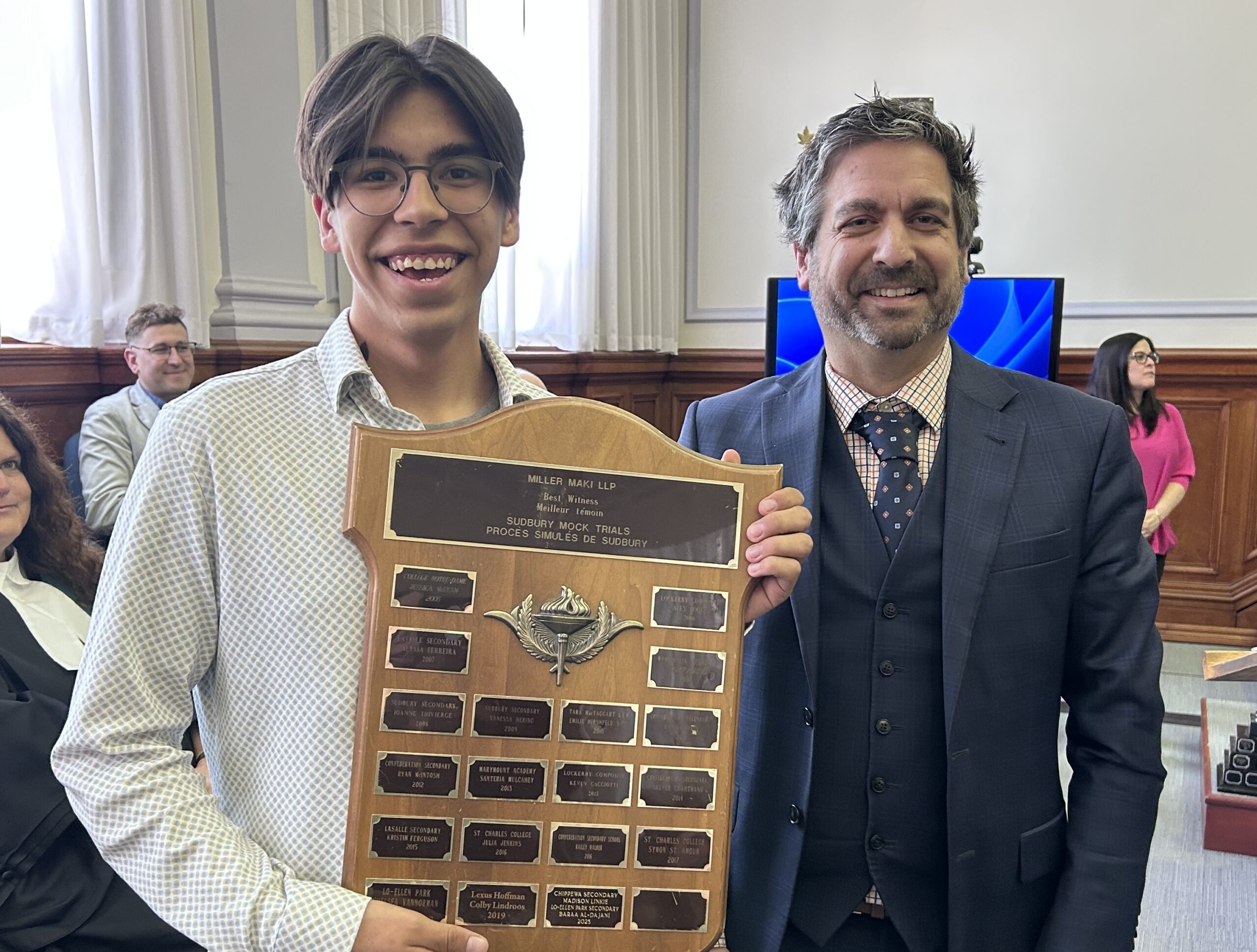 Photo: Espanola High’s Nico Jacko was the winner of the Miller Make Best Witness Award, as a participant in the Annual Mock Trial Competition. Photo provided