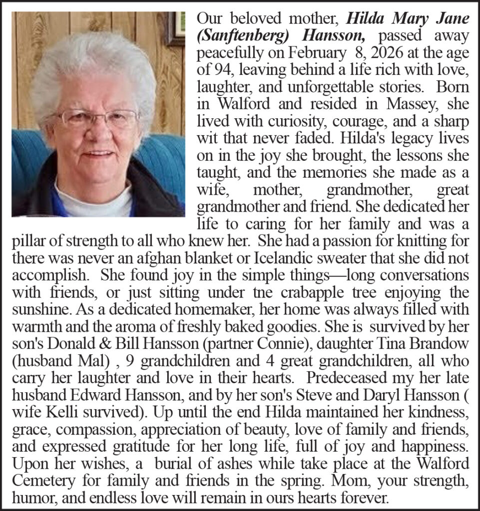 Obituary – Hilda Mary Jane (Sanftenberg) Hansson