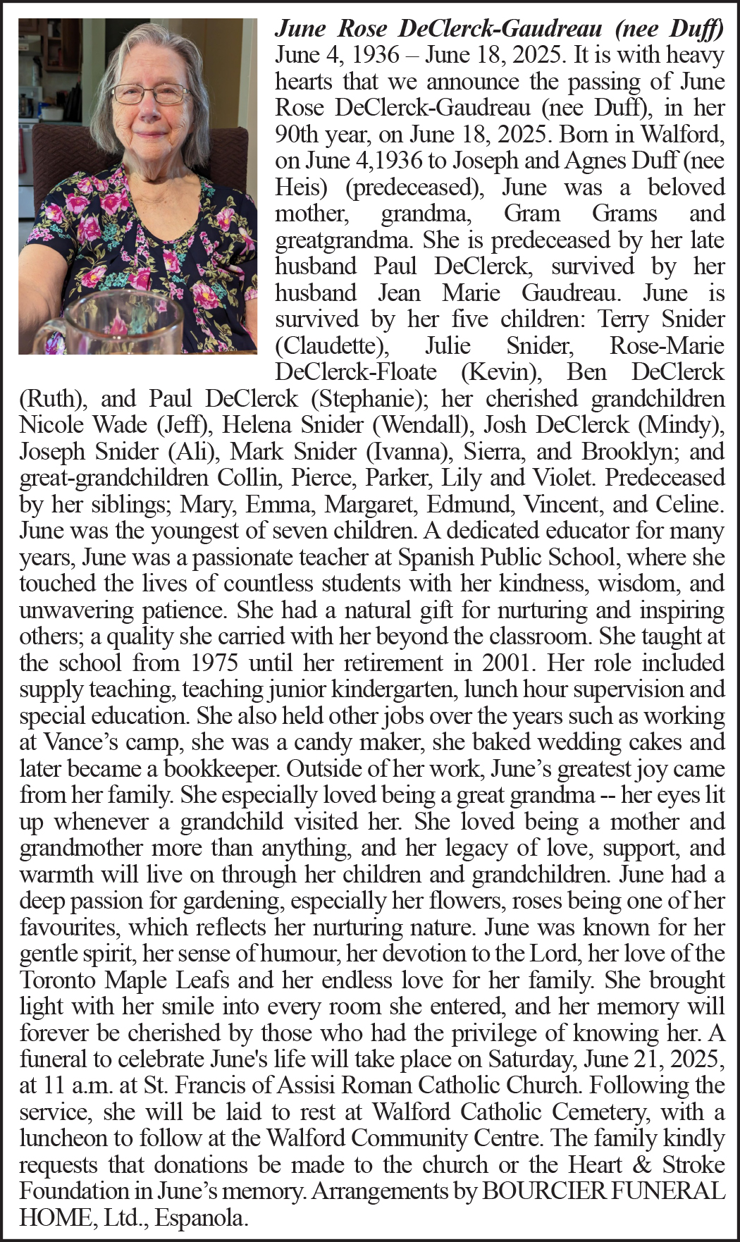 Obituary – June Rose DeClerck-Gaudreau (nee Duff)