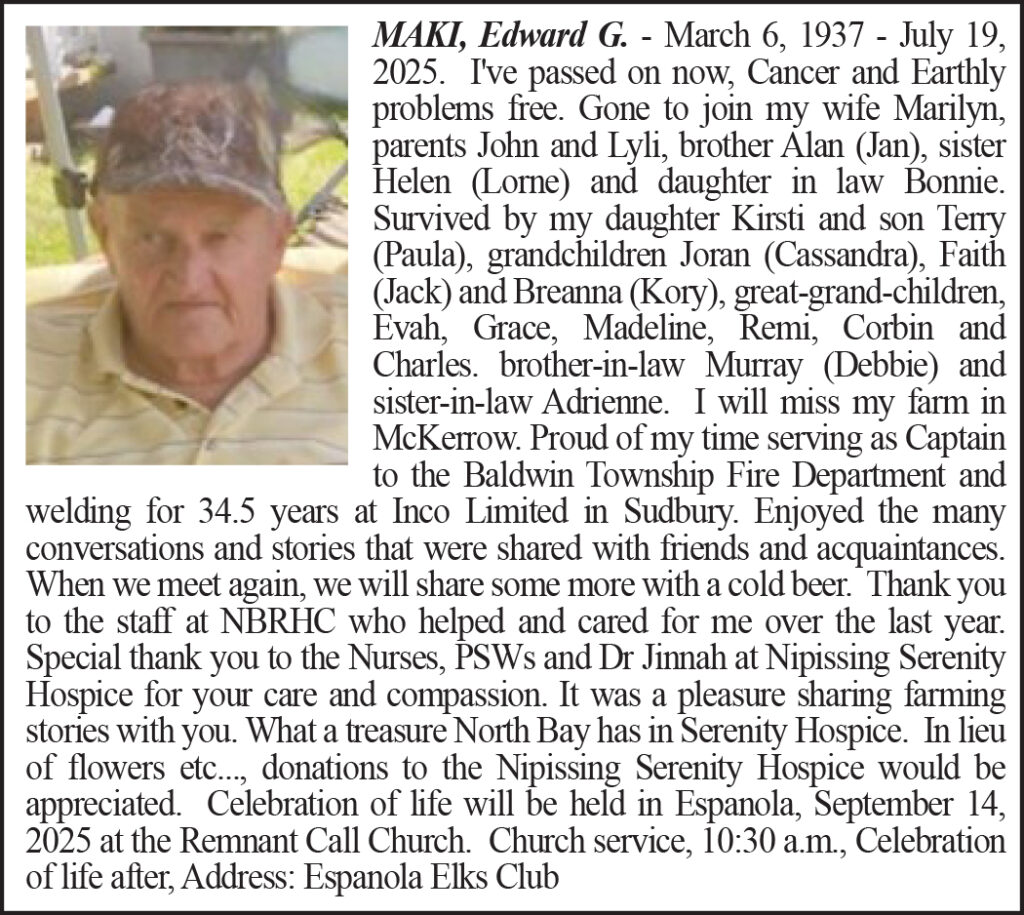 Obituary – Maki, Edward G