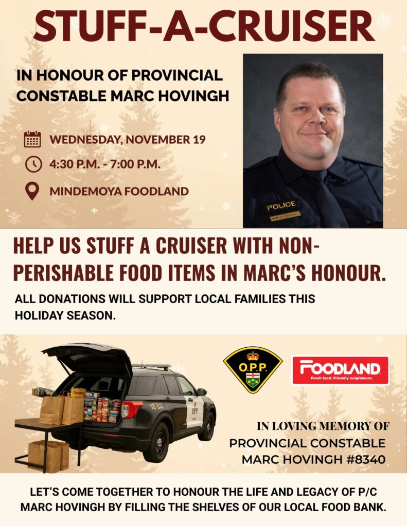 By Rosalind Russell – Manitoulin OPP is hosting its Second Annual Stuff-A-Cruiser event next week in honour of the late Constable Marc Hovingh.