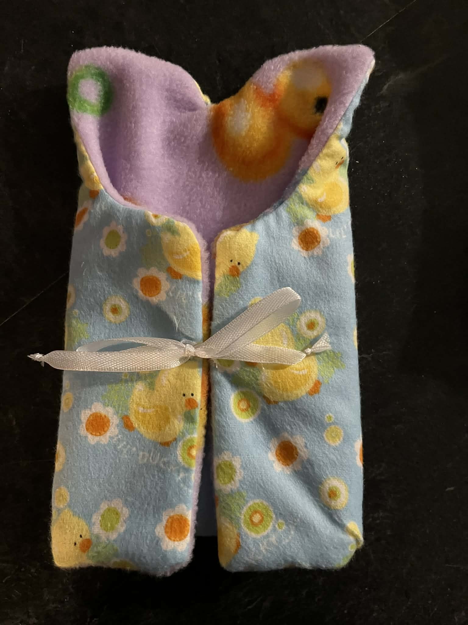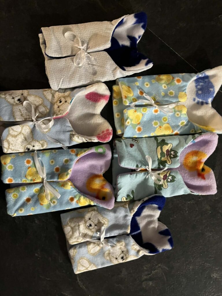 She also makes micro-wraps for tiny babies, one- to – two- pounds, that allows parents to cuddle their little ones and keeps them warm, donating them to the neo unit at Heath Sciences North.