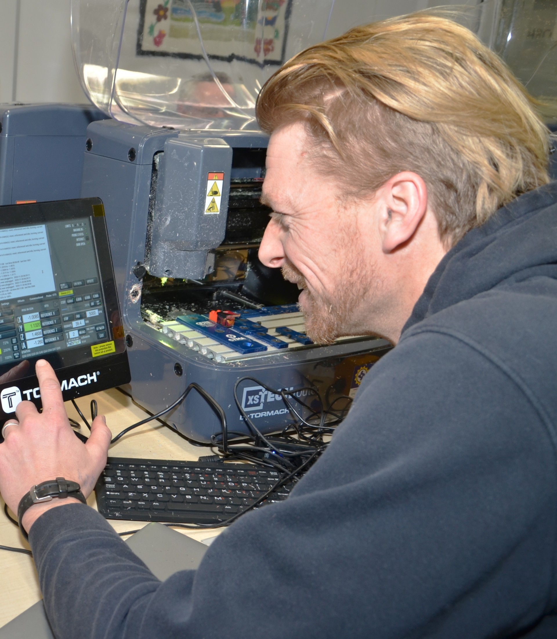 Photos: Tech 4-Gabriel Keresztesi, a technology teacher at Espanola High School, checks the specifications before using the Tormach XS to print.