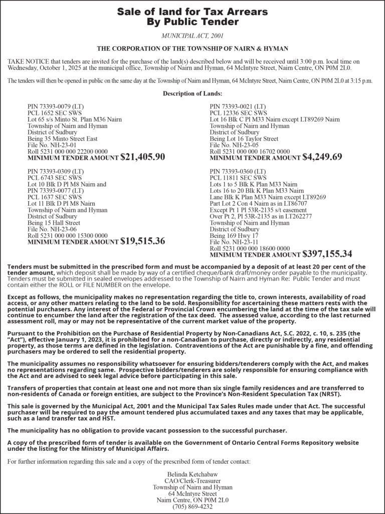 Township of Nairn – Sale of Land